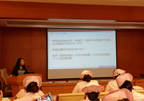 最后,神经内科八病区巩晓英主任详细讲解了《急性缺血性卒中的诊治》,让卒中健康管理师对卒中的评估、诊断、治疗的有了更深一步的认识,为为期一月的“健康管理师培训班”拉开了序幕。