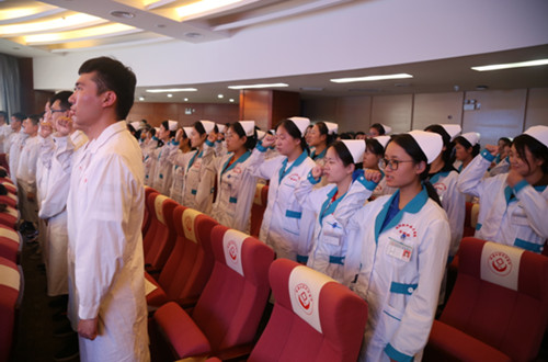 随后,所有学生和学员庄严宣誓:“健康所系,性命相托”响彻会场,浸入心扉。他们的宣誓,展现了新一代医护人员的热情,表达了为人民生命健康而不懈努力的坚定决心,为祖国医疗卫生事业奉献终身的矢志不渝!