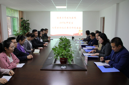 2018年10月16日下午,“延安大学咸阳医院2018级研究生欢迎仪式暨导师见面会”在科教楼二楼会议室隆重召开。会议由科研教学管理中心韩晓芳主任主持。延安大学咸阳医院常务副院长张海涛、副院长姚晓峰、科研教学管理中心主任韩晓芳、神经内科VIP病区主任郭爱红、科教部副部长王绍辉、科教部樊高侠以及2018级硕士研究生近20人参加了会议。