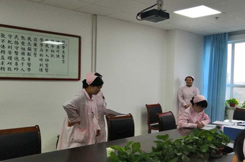 接下来各小组成员分别就日常护理工作中如何进行与患者及家属有效沟通,怎样给患者及家属留下良好的第一印象进行探讨,会场气氛热烈,大家各抒己见。