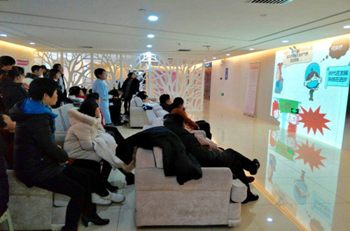 在接下来的模拟体验分娩疼痛环节,第一名准爸爸自告奋勇地坐在了分娩体验仪旁边的椅子上,脸上充满期待。护士将连接分娩体验仪的腰带和探测仪绑在了他腹部。开启仪器后,随着显示屏疼痛等级的不断攀升,他的神情由泰然自若,逐渐变得恐怖狰狞,痛苦不堪,连连喊疼,体验完毕。他如释重负地长叹一口气:真疼!老婆,你太辛苦了!”