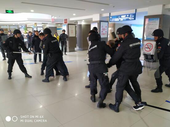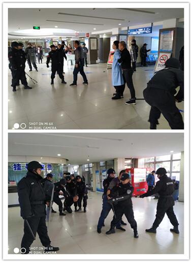 为确保春节假期医院安全稳定,提高医务人员安全防范意识,增强保卫人员应急处事能力和维护医院财产安全。2019年1月31日下午我院保卫科联合警务工作站,在急诊科诊室开展一次涉医反恐演练,为确保真实性,保卫科长和警务工作站蔡教导和陈警官双方协商并拟定方案,没有事前通知,没有事前准备,是对保卫科和急诊科、导医台、收费室的快速反应能力、应急处事能力和思想承受能力的多方面检验。