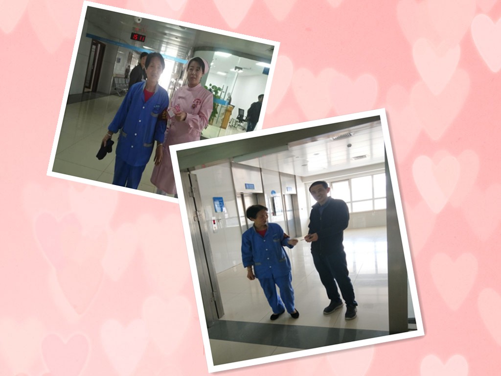 2019年3月29日下午,保洁阿姨一手拿着抹布,一手拿着一张百元钞票,着急的来到护士站。对王宝艳护士长说:“在病房打扫卫生时捡到了100元钱,想着病人着急就过来给您”。护长立即电话联系当日出院患者,经详细询问和核查,确认是当日出院患者并通知他及时来认领。