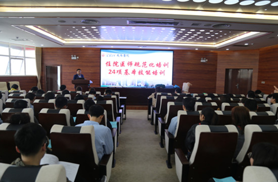我院领导高度重视此次培训,成立了康彦文院长为组长、科研教学管理中心韩晓芳主任、王丙聚副院长为副组长的考核领导小组,先后多次组织专家进行讨论,深度解读住院医师规范化培训大纲要求,结合各专业基地具体培训重点和往年技能技能考核经验,从培训前准备、集中培训(含理论培训和操作培训),到最终考核设计了一整套完整、科学的培训考核体系,为考核工作的顺利进行了奠定了牢固基础。在培训前,住培办专门对培训指导老师、考官召开了“培训、考核前准备工作”会议,对培训考核的标准、流程等进行了细致的要求,尤其强调了对内涵质量的把握,即学员能充分将技能操作要义展现在每项操作上,确保学员们掌握24项基本技能。