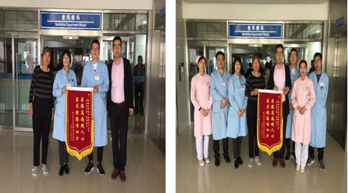 在我院即将迎来七十周年院庆之际,老年病科医护人员和全员职工一道喜上眉梢,喜上加喜,收到锦旗两面,感谢信一封。
