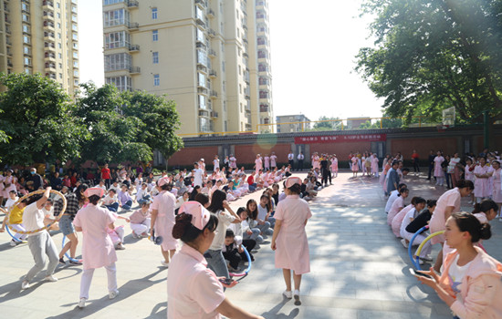 2019年5月9日,延安大学咸阳医院科研教学管理中心和护理部共同举办了“凝心聚力,青春飞扬”为主题的“5.12”国际护士节庆祝活动。我院护理见习生参加了庆祝活动,并作为参赛队伍参加了趣味运动。趣味运动引来了不少来“杏林苑”锻炼的病患及家属驻足观看,现场异常热闹。
