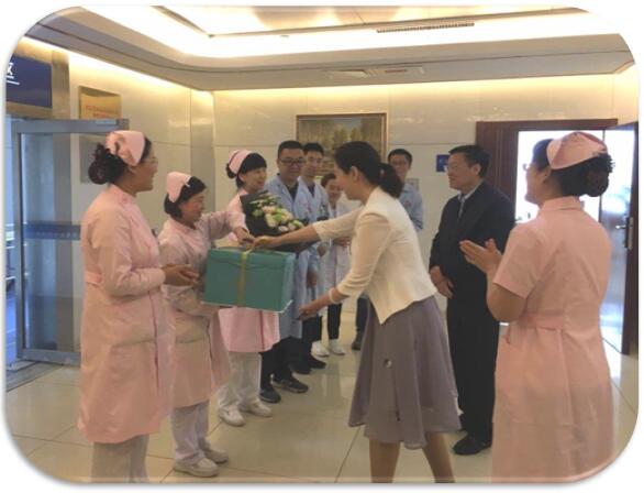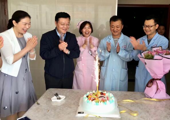 康院长和韩主任为优质护理服务先进病区送蛋糕和鲜花