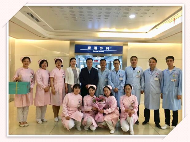 5月10日上午,在5.12护士节来临之际,我院康彦文院长、科研教学管理中心韩晓芳主任及护理部等领导亲切慰问外科病院临床一线护理人员,为她们带去了节日的祝福与问候,还为她们送上了特制的“白衣天使”主题蛋糕、鲜花并合影留念。大家都十分感动,她们纷纷表示,在以后工作中继续发扬南丁格尔精神,努力为患者提供全程、全面、优质、贴心的护理服务,继续在平凡的护理岗位上做出不平凡的业绩。
