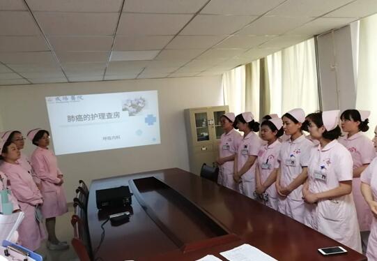 为了提高护士的理论知识以便更好的为患者服务,呼吸内科针对呼吸内科疑难、复杂、特殊、新开展的治疗护理项目等病人,根据目前护理方案、护理措施以及护理质量,正确指导解决修正病人的护理方案、护理措施。2019年5月16日下午17时许,由内科病院陈英总护士长带队,内科病院所有护士长、呼吸内科全体护士共30余人参加了本次查房,查房内容为肺癌的护理。