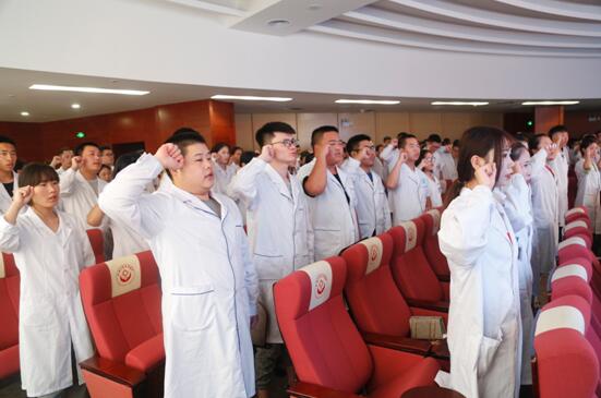 欢迎仪式上,科研教学管理中心韩晓芳主任代表医院对实习生来院学习表示欢迎,并对医院的基本情况进行了介绍,随后对大家在医院的学习生活提出几点宝贵的意见,希望同学们能迅速从思想上完成角色定位和转变,更好、更快的适应新环境,以满腔热情投身于实习中去,做一个文化素养与专业素质兼备的医学人。随后,学生代表熊林勇带领全体实习生进行宣誓。