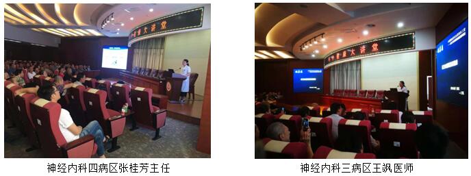 本次讲座由神经内科一病区梁伟娟护士长主持,神经内科四主任张桂芳和神经内科三病区王飒医生分别以PPT形式进行《如何远离卒中》和《保卫血管就是保卫健康》为主题的知识讲解。