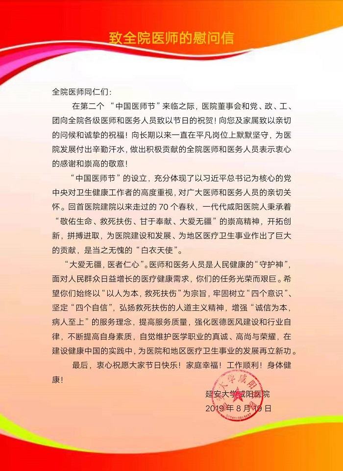 8.19中国医师节——致全院医师的慰问信!