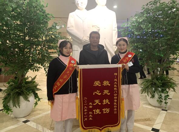 冬日里一个平凡的早晨,延安大学咸阳医院脑血管门诊大厅像往常一样人来人往,熙熙攘攘。圆形导医台外突然有人询问:“你好,请问,李玥护士在么?”我赶紧上前了解情况,原来前几天李玥帮助了一名患者杜某,家属得知后万分感谢,今天和患者一同专程送锦旗来了!李玥这才愣过神来,傻傻的笑着说:“大哥,您太客气了,我只是做了我们该做的事!”杜大哥连忙说道:“不不不,你是我的救命恩人啊!”说着,杜大哥回忆起了当时的情景…….