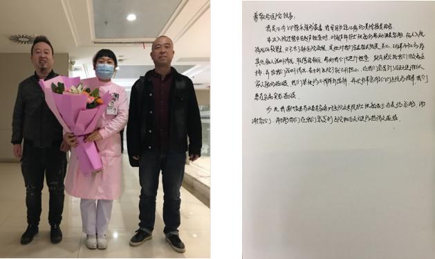 2020年10月19日,延安大学咸阳医院超声科收到来自心内VIP患者徐永强家属的感谢信和鲜花!信中说到:患者在超声科进行检查时,由于患者入院情况比较紧急,不太了解医院的流程,超声科导医张敏对患者报以微笑和关心,又非常耐心地为其他患者说明情况,取得理解后,为患者跑前跑后做好安排,并安慰患者:“您到了医院就不用担心了!”让患者感受到了白衣天使胜似家人般的温暖,缓解了患者及家属紧张的情绪,患者在此感谢医院的培养,让他们感受到了温暖!
