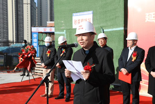 代表施工单位和监理单位领导,在封顶仪式上分别作重要讲话。