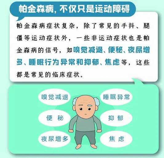 帕金森病是一种常见的中老年人神经系统功能障碍性疾病,最被人熟知的症状是手抖。帕金森病除了静止性震颤、肌肉强直、活动缓慢、姿势平衡障碍等“看得见”的症状,还有常常被人们忽略的“看不见”的症状,如便秘、夜间大汗、嗅觉减退、抑郁、睡眠障碍、记忆减退等。“看不见的”症状往往会先于“看得见的”症状出现,并贯穿疾病始终,影响治疗效果,严重影响患者生活质量和生活能力。帕金森病症状复杂,不少患者早期诊断困难,需定期复诊及时修正诊断,另一方面确诊患者在治疗过程中可能出现运动波动、异动症、幻觉、冲动控制障碍等多种复杂问题,处理不当有可能带来严重后果。