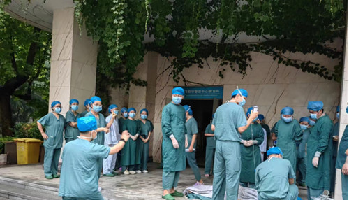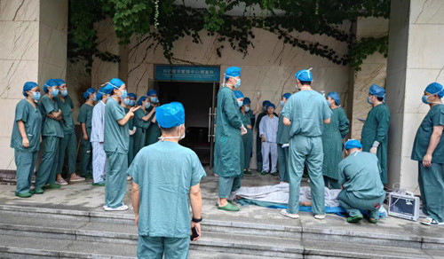 人员全部撤离后,槐金霞护士长通知保障部人员断电、重症医学科关闭氧源。全部人员撤离至杏林广场后,各手术间护士做好病人安抚工作,并密切观察病情变化。槐金霞护士长清点人数,确保所有人员安全撤离,然后将所有手术患者根据院领导指示转运至合适地方继续完成手术。