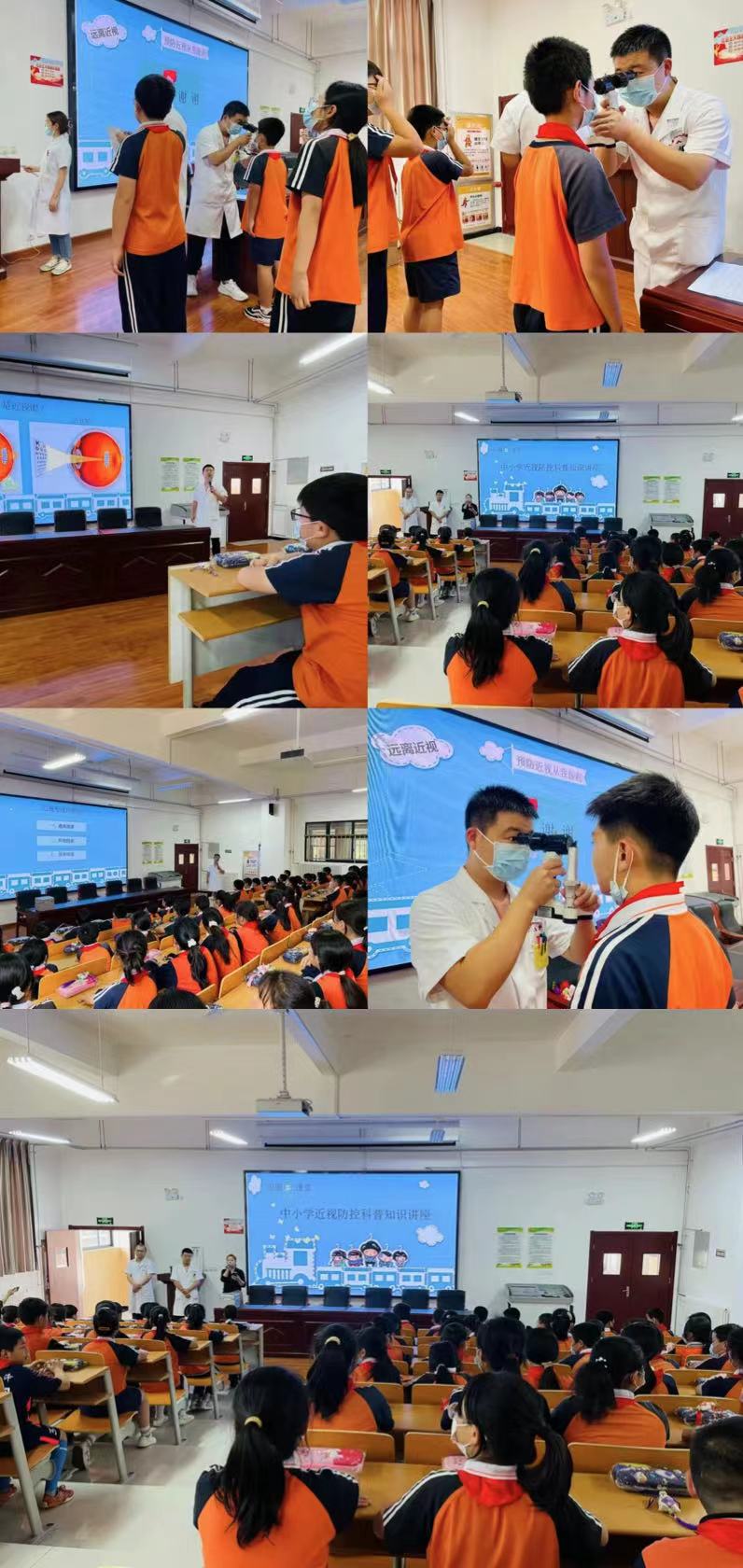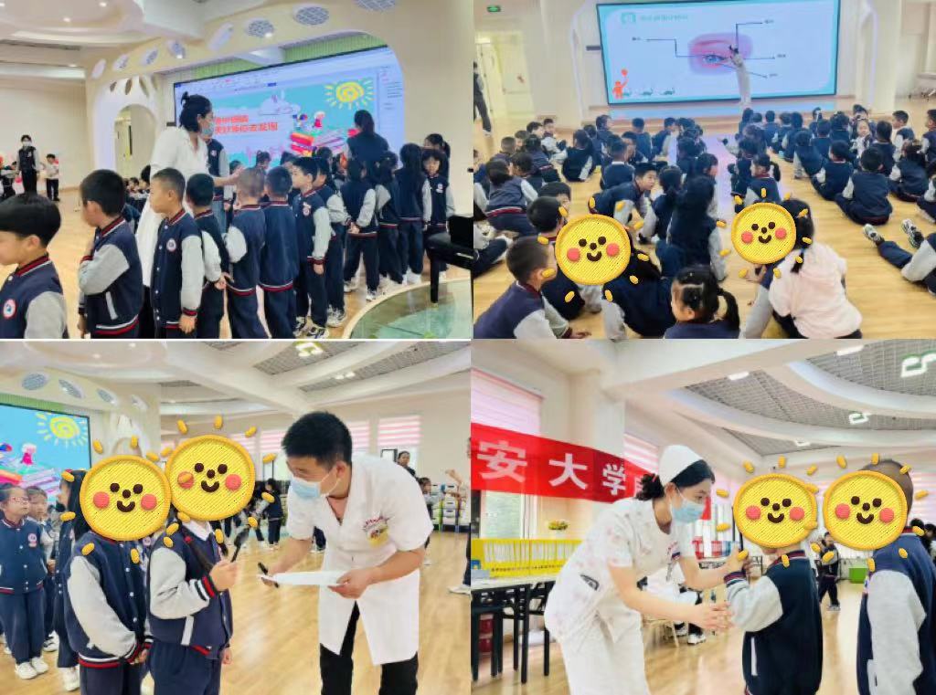 《“十四五”全国眼健康规划(2021-2025年)》指出重点关注两类人群,一老一小。儿童青少年近视已成为我国视力损伤的主要原因,本次活动我们以“走进校园”为主题,专家团队分别在文林幼儿园、秦汉新城渭柳学校开展科普讲座及视力筛查。活动期间,医护人员通过精心制作的动画宣传眼睛小知识、科学用眼习惯、保护眼睛健康等科普内容,让幼儿园小朋友及学生了解了正确用眼的相关知识,受到老师和家长的一致好评。尤其是活动中和幼儿园的小朋友们完美互动,小朋友们在愉悦的氛围中,不仅了解了科学用眼的有效方法和习惯,哪些习惯对眼睛不好不能做,怎样保护我们的小眼睛,吃什么对我们的眼睛好,还和护士阿姨一起做《眼睛保健操》。孩子们天真无邪的笑容、认真而又开心的脸庞、专注而又稚嫩的动作,感染了在场的每一个人。随后,医生对视力筛查异常的学生进行了进一步检查,详细介绍防盲治盲项目内容,重点讲解怎样预防近视、保护眼睛。