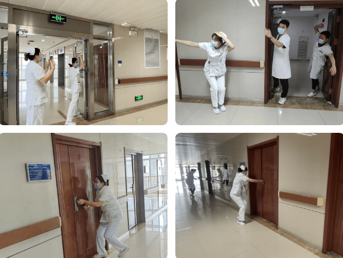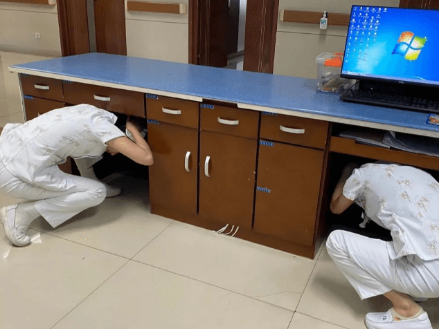 办公护士发现地震后立即大声呼叫,姚冲护士长立即组织人员紧急避险,通知病区其他人就近进行避震。