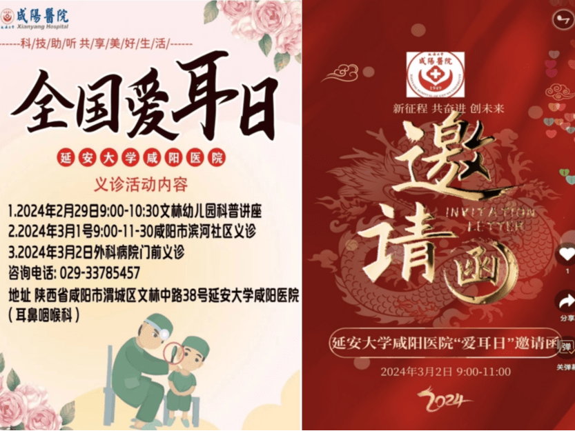 2024年3月3日是第二十五个全国爱耳日,今年爱耳日的主题是“科技助听,共享美好生活”,延安大学咸阳医院耳鼻咽喉科于2月29日至3月3日以多种形式开展“爱耳日”系列活动。