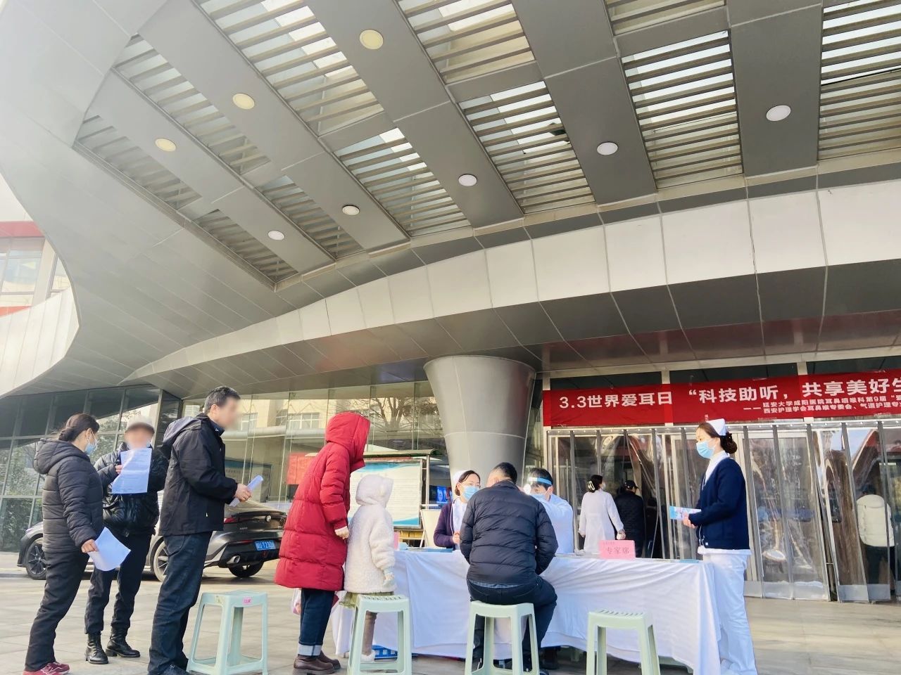 3月2日,我们分为两组进行义诊活动,一组由冯丹医生联合延安大学咸阳医院助听器验配室梁喜娟验配师远赴永寿县中心广场,另一组由张立刚主任及康乐医生在延安大学咸阳医院外科病院门前同时进行。天气虽愈发寒冷,但前来咨询及检查的患者依旧热情不减。与此同时,为了回馈患者们的信任与支持,还特别设定了抽奖活动,现场气氛热烈,医患互动融洽,使人们更加重视耳部健康。