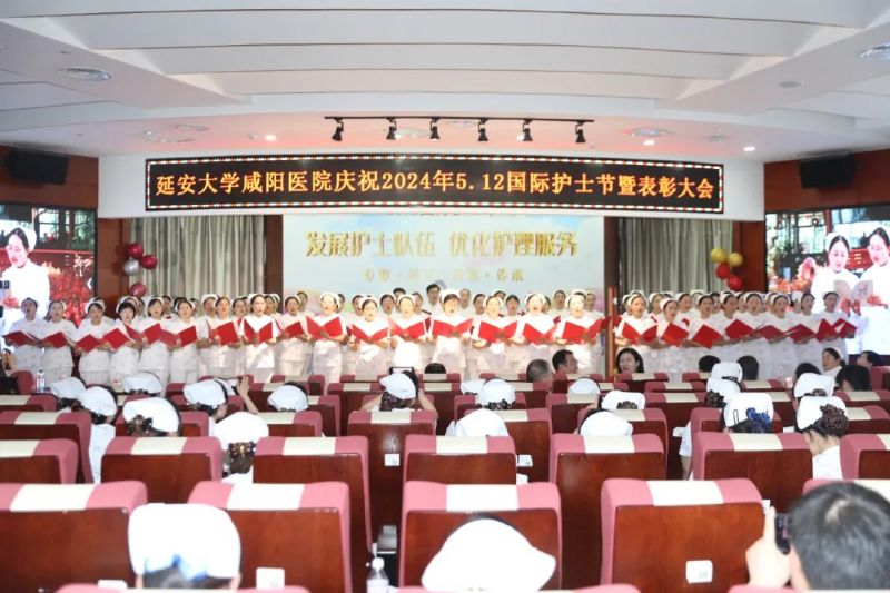 暮春醉五月,雨露润芳菲。2024年5月9日14时,延安大学咸阳医院在脑血管病院第三学术厅隆重举行主题为“专业• 担当•价值•传承”的第113个国际护士节庆祝活动暨表彰大会。精诚医疗集团董事局主席兼延安大学咸阳医院董事长李卫军、延安大学咸阳医院院长姚晓峰及院领导班子成员、各职能部门负责人、全院护士长及受表彰的优秀护士、优质护理服务先进个人、优秀带教老师及护士代表共计360余人参会。退休护理专家李青、吴丽萍受邀参会。