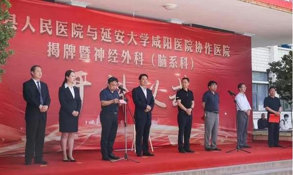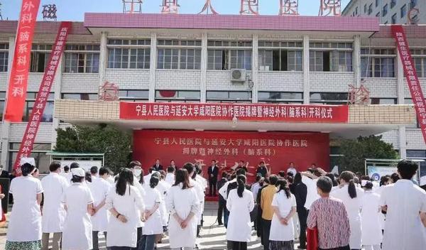 延安大学咸阳医院与宁县人民医院积极筹备协商,于2021年6月18日,宁县人们医院与延安大学咸阳医院协作医院揭牌暨神经外科(脑系科)开科仪式在宁县人民医院举行。
