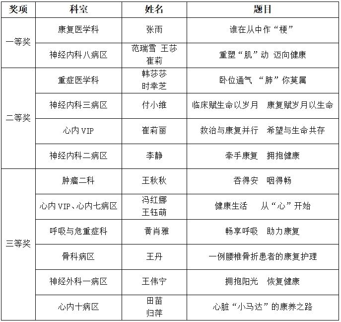 延安大学咸阳医院第二届康复护理案例大赛获奖名单