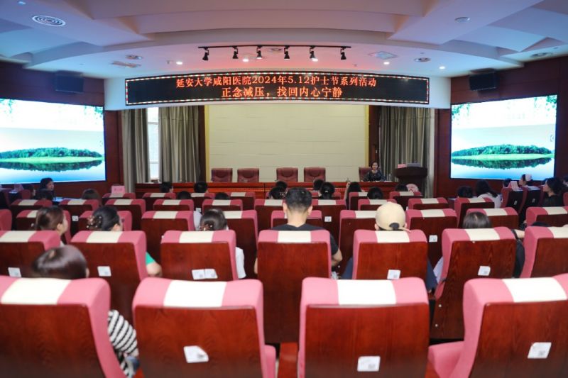 5月25日是心理健康日,为了提高护士对心理健康的重视程度,帮助护士学会关注自身和他人的心理健康;同时积极响应并贯彻落实《国家卫生健康委办公厅关于做好2024年5.12护士节相关工作的通知》,加强护士人文关怀,帮助护士舒缓压力,共同营造一个积极向上的生活、工作氛围。我院护理文化建设委员会及临床护理专业委员会心理护理专业组于2024年5月29日14时在脑血管病院第三学术厅举办“正念减压,找回内心宁静”为主题的大型团体减压活动。本次活动由护理文化建设委员会主任委员、正念减压(MBSR)/正念认知(MBCT)培训师、延安大学咸阳医院心血管病院总护士长党文婷带领,护理文化建设专业委员会委员、临床护理专业委员会心理护理专业组委员、联络员及对有减压需求的医务人员等200余人参加了此次活动。