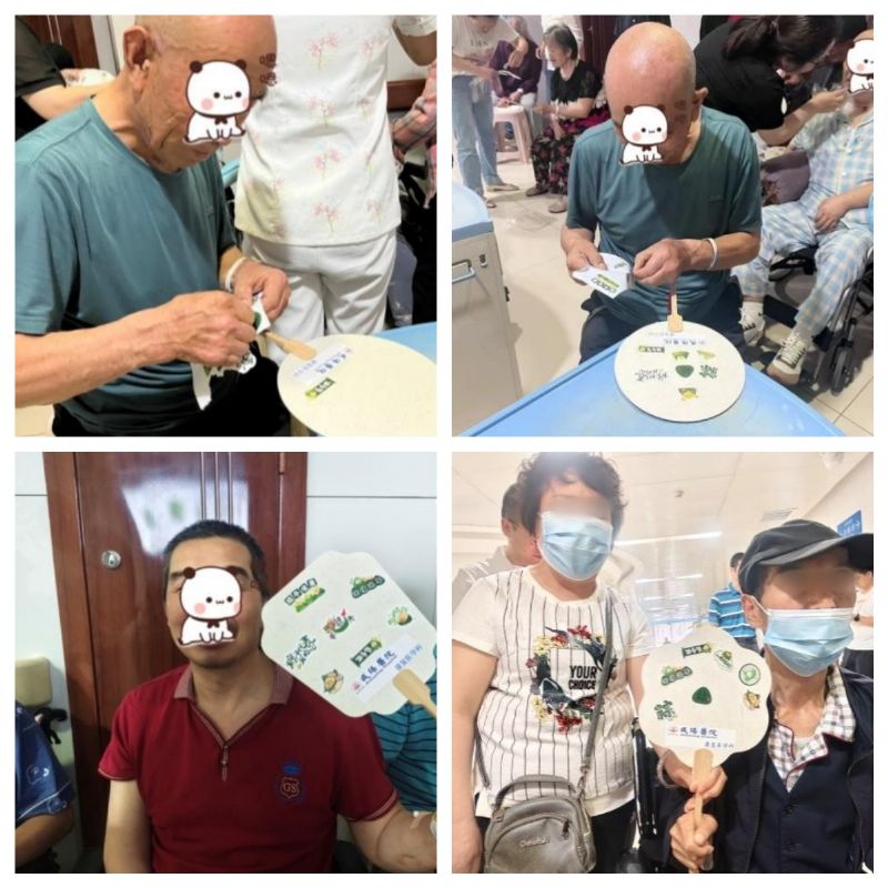 患者及家属齐参与,共同制作装饰团扇。看似简单的贴纸装饰,对于患者来说则需要付出比常人更多的努力。通过此活动锻炼患者手部精细动作和空间想象力。团扇有“团善”美意,团扇的形状为圆形,象征着完整和完美,代表着团圆友善、吉祥如意。在工作人员的鼓励与协助下,一个个精美的扇子装饰完成了,患者脸上纷纷洋溢着成功的喜悦。