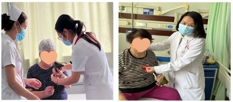 “彩线轻缠红玉臂,小符斜挂绿云鬟。”端午节里,五彩绳是不可或缺的习俗之一。五种颜色的线交织成寓意吉祥的五彩绳,轻轻缠绕在患者们的手腕上,象征着祈福与安康。
