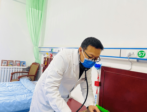 心血管科责任总孟庆魁医生开展查房巡诊活动,为老人提供问诊、查体、疾病服务。