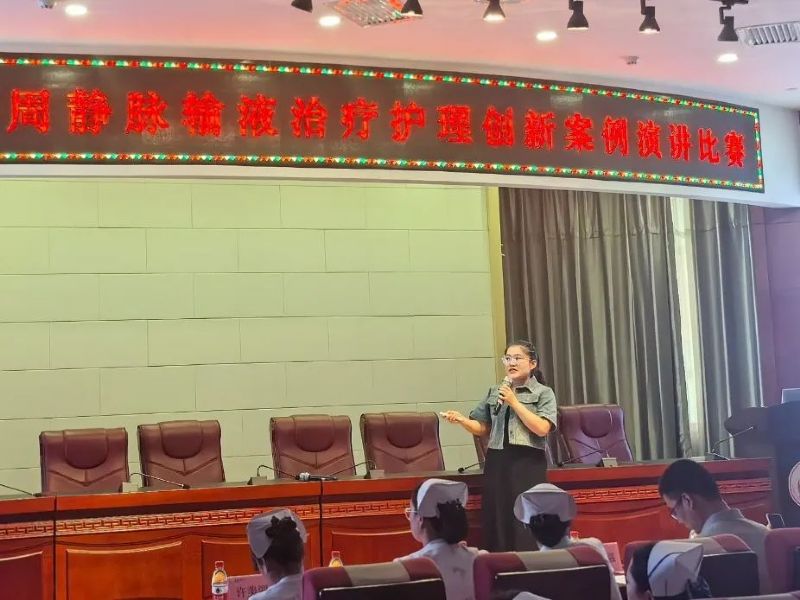 经过前期筹备和层层筛选,共有十名选手进入决赛。选手们以临床案例为切入点,结合《静脉治疗护理技术操作标准》(WS/T 433-2023),从实用性、科学性、严谨性和前沿性出发,内容紧扣降低堵管发生率及主动静脉治疗,从“专科特点”、“风险控制”和“质量改善”等多个角度讲述规范静脉治疗的重要性。运用幻灯片、视频和案例导入等方式,声情并茂、精神饱满。