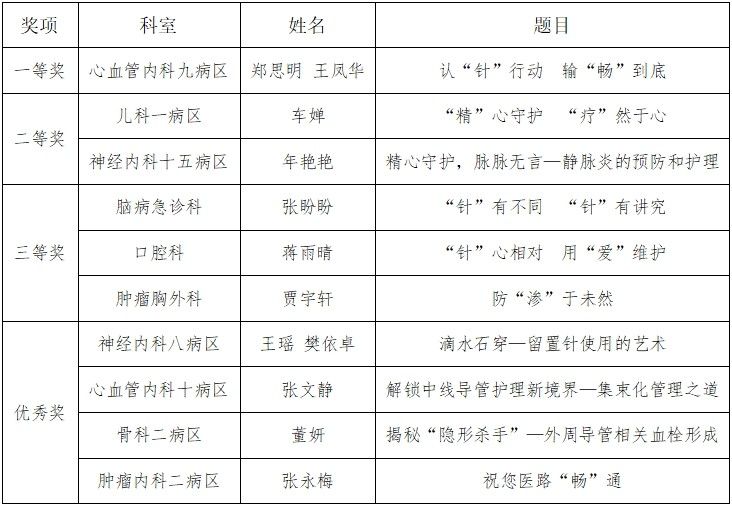 附:第五届外周静脉输液治疗护理创新案例演讲比赛获奖名单
