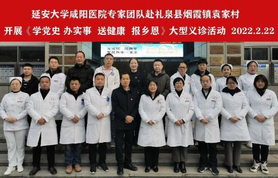 为了继续把党史教育深入宣传,更好地运用党的百年奋斗历史经验,积极响应习近平总书记在党史学习教育动员大会上的讲话精神,把为民服务贯穿到每处工作细节中,将党史学习教育与工作紧密结合。2月22日-23日延安大学咸阳医院赴礼泉县烟霞镇袁家村,举办“学党史·办实事·送健康·报乡恩”为主题的大型义诊活动。参加此次义诊活动的有烟霞镇人民政府副镇长侯文科、袁家村村委会主任王创战、延安大学咸阳医院流动医院院长赵莉、流动医院行政副院长张军强、业务副院长王梅芳、宣传部科长梁卫华和专家医护团队及群众300余人。