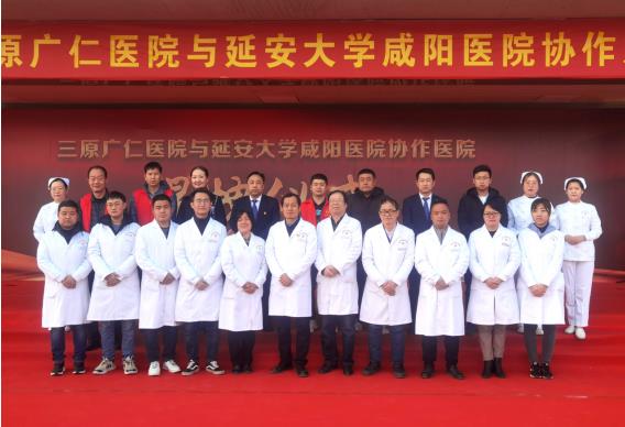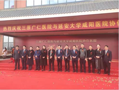 3月3日上午,延安大学咸阳医院党委书记姚晓峰、宣传部部长赵莉、宣传部科长赵文章及各科室专家一行,赴三原参加三原广仁医院与延安大学咸阳医院协作揭牌仪式!三原县县委常委统战部、人大、政协、卫健局、民政局、医保局、残联、妇联等单位及三原广仁医院院长王辉、延安大学咸阳医院流动医院医护团队、抗美援朝老兵代表和职工代表出席了仪式。