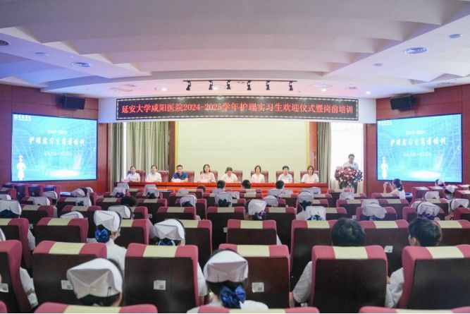 临床实习是学校教育的延伸,是专业理论与实践相结合的关键。为进一步规范实习生管理,帮助护理实习生尽快完成角色转换,保障实习期间护理安全,延安大学咸阳医院护理教学管理委员会于2024年7月18日-7月20日,在脑血管病院第三学术厅召开“2024-2025年度护理实习生欢迎仪式暨岗前培训”。院长助理兼护理部主任杨敏、科研教学管理中心副主任陈青、护理教学管理委员会主任委员党文婷、消防科科长郭俊鹏、感染控制办公室干事樊格以及全体教学委员会委员出席了开幕式,来自延安大学西安创新学院等8所学校154名护理实习生参加培训,会议由护理部教学干事孙姣姣主持。