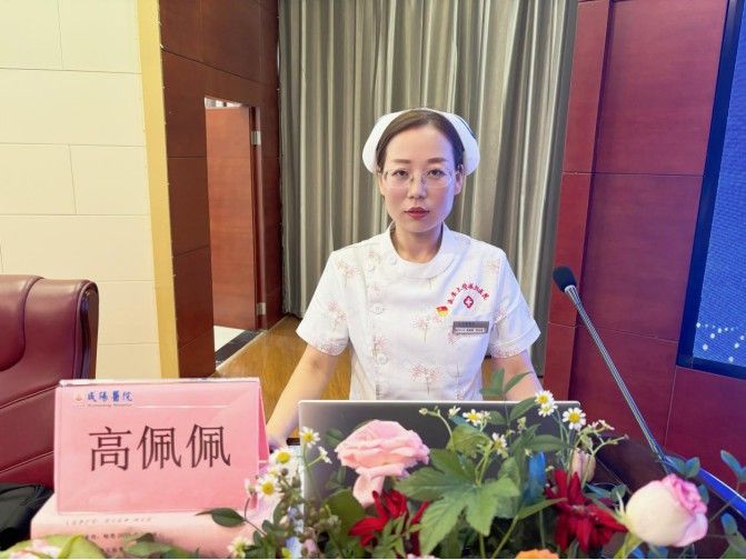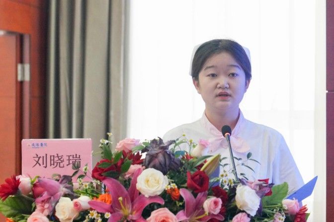 随后,实习生代表刘晓瑞同学发言。她说:我们既是学习者,也是护理者,要时刻保持谦虚好学的态度,积极向上的心态,强化理论知识,磨练专业技能,用专业的知识和饱满的热情,尊重患者、关爱患者,努力践行“以病人为中心”的服务理念。