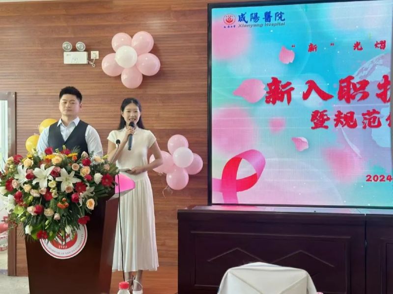 为使新入职护士尽快适应新环境及新角色,树立正确的人生观及职业观,增强职业认同感和归属感。延安大学咸阳医院于8月13日下午在外科病院第四学术厅隆重举行2024年新入职护士欢迎会暨规范化培训开班仪式。延安大学咸阳医院院长助理兼护理部主任杨敏、护理人员继续教育管理委员会主任委员、外科病院邢娟娟总护士长、心血管病院党文婷总护士长、脑血管病院宋春兰总护士长、内科病院徐金强总护士长及全体护士长、护士代表等欢聚一堂,共同欢迎180位同事。迎新会由急诊科冯凯和消化内科二病区程雨妍主持。