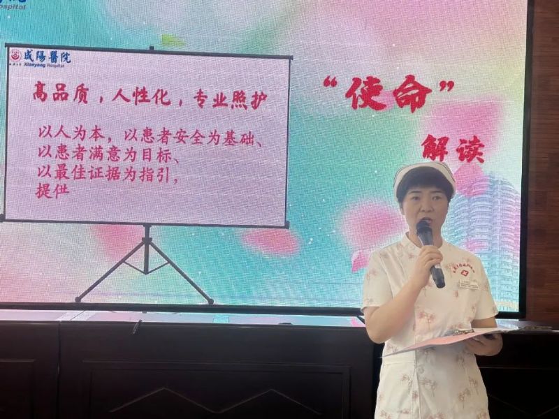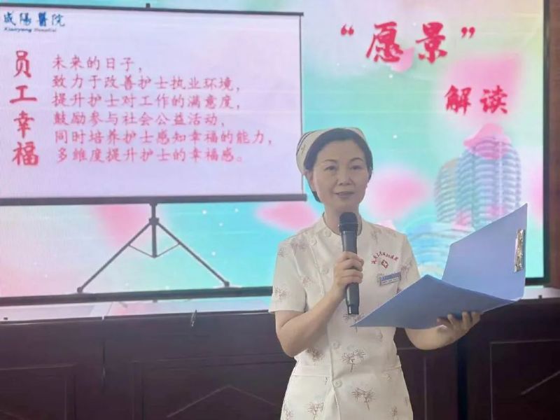 四位总护士长诠释了延安大学咸阳医院“护理团队愿景、使命、核心价值观”。引导大家以患者为先,同理心、爱心为辅,提供高品质人性化的专业照护,秉承尊重关爱、精诚合作、敬业爱岗、务实创新的核心价值观,为实现建设患者信赖、员工幸福、区域一流护理团队的愿景而共同努力。
