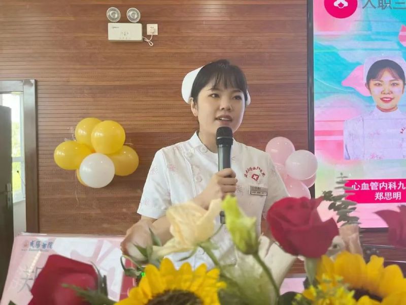 心血管内科九病区护士郑思明作为护士代表分享工作感悟,从一个懵懂无知的毕业生,成长为一个可以独当一面的战士。工作中要不断地学习、成长、进步。要有一颗爱心、感恩的心、进取的心,努力去展示自己;要坚守职业初心,做一个有知识、有能力、有温度、有情怀、有价值的护理人。