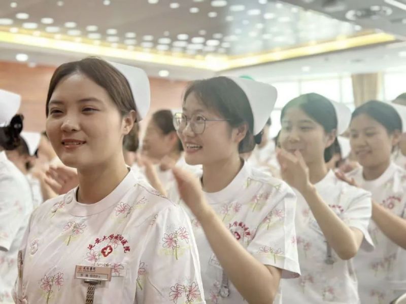 伴随着熟悉的旋律,全体护士倾情合唱《中国护士之歌》,重温护士的职责和信念,吹响护理事业奋进的号角,致敬甘于奉献、大爱无疆的中国护士。