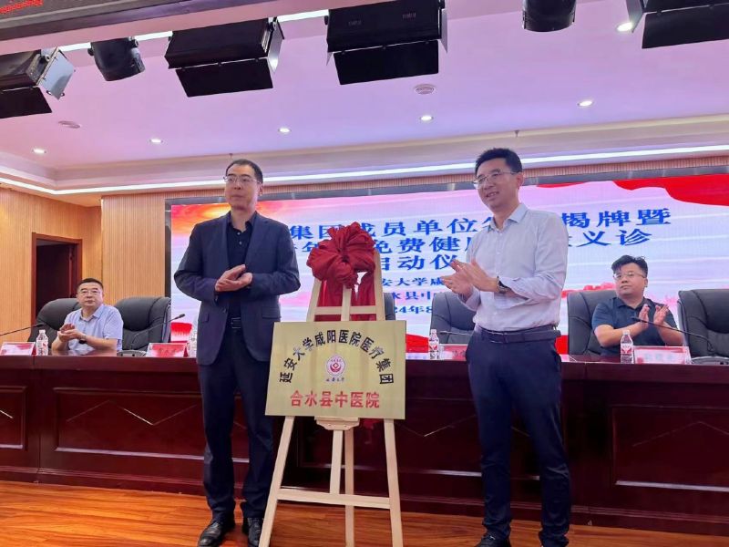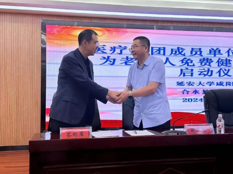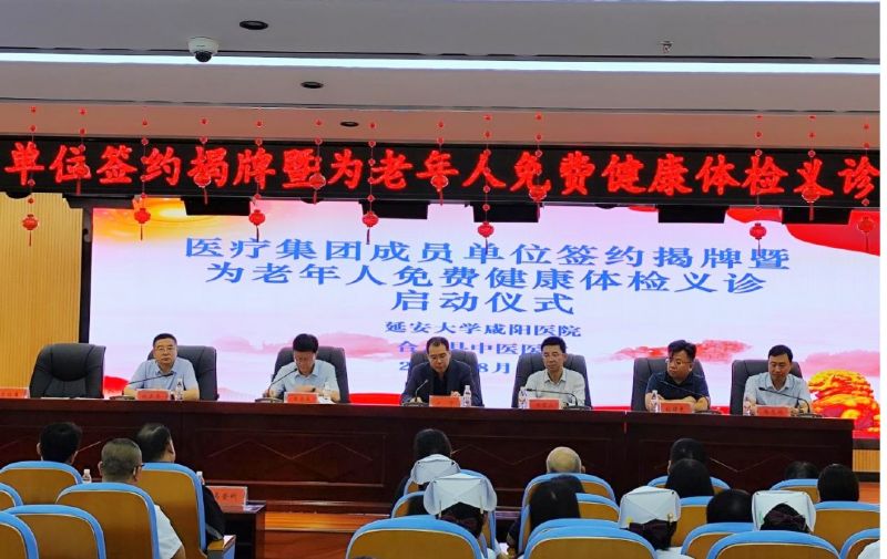 为进一步深化医药卫生体制改革,强化医联体、专科联盟内涵建设,落实多元化帮扶措施,促进医疗资源共享,技术下沉,服务提质,不断推动医疗服务协同发展,更好地满足群众健康需求,进一步缓解群众“看病难、看病贵”等问题。2024年8月16日,延安大学咸阳医院与甘肃省庆阳市合水县中医医院建立医联体签约暨“党建引领助力乡村振兴,医心为民倾心送医下乡”健康义诊活动启动仪式,甘肃省庆阳市合水县副县长冯宝山,延安大学咸阳医院行政副院长沙宁、社会服务部部长张曙光出席活动,及合水县中医院党政班子成员、各相关科室负责人共计40余人参加启动仪式。