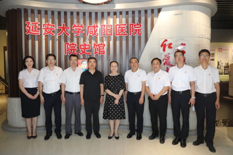 蒋彬凤一行首先参观了“陕西省爱国主义教育基地”——院史馆。在这里,一幅幅珍贵的历史照片、一件件富有年代感的展品,生动地讲述了医院七十五年来的风雨历程,展现了医院从解放战争的烽火岁月,到抗美援朝的英勇壮举,再到社会主义建设、医院改革发展所取得的辉煌成就。蒋彬凤详细听取医院建设历史的介绍,她强调,作为一所具有光荣革命传统和红色基因的三级甲等综合性医院,延安大学咸阳医院不仅要传承老一辈艰苦奋斗的优良传统,还要融合“救死扶伤、敬佑生命、甘于奉献、大爱无疆”的职业精神并发扬广大,更要将这份宝贵的精神财富转化为推动医院发展的强大动力。