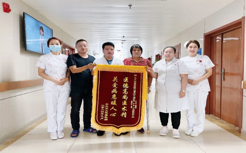 患者于9月30日出院之际,患者在家人的陪伴下,将一面写着“关爱病患暖人心”的锦旗送到了护士站。这面锦旗,不仅是对护理团队工作的肯定,更是一种激励和鞭策。它见证了护患之间的深厚情谊,也让我们看到了护理工作的价值和意义。在未来的日子里,心血管内科十一病区的护理团队将继续秉承“以患者为中心”的服务理念,用真心、爱心和责任心,为每一位患者提供更加优质、温暖的护理服务,让更多的患者感受到关爱和希望。