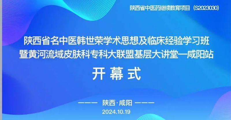 十月微凉,秋雨潇潇,桂香盈袖。值此收获的季节,我们齐聚历史悠久、文化底蕴深厚的古都咸阳,共同参与这场由陕西省中医医院主办、延安大学咸阳医院承办的“陕西省名中医韩世荣学术思想与临床经验学习班暨黄河流域皮肤科专科大联盟基层大讲堂—咸阳站”的学术盛宴。大会于2024年10月19日在陕西省咸阳市延安大学咸阳医院顺利召开。为进一步推动我国中医事业的发展,本次会议秉承开放、思变、创新的精神,邀请多位国内著名中医专家学者,共同分享中医领域最新研究进展以及临床诊疗方法和经验。