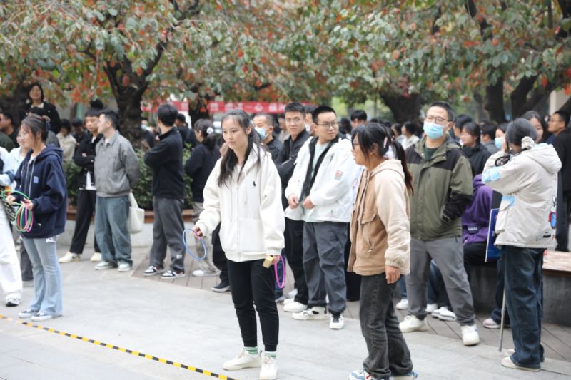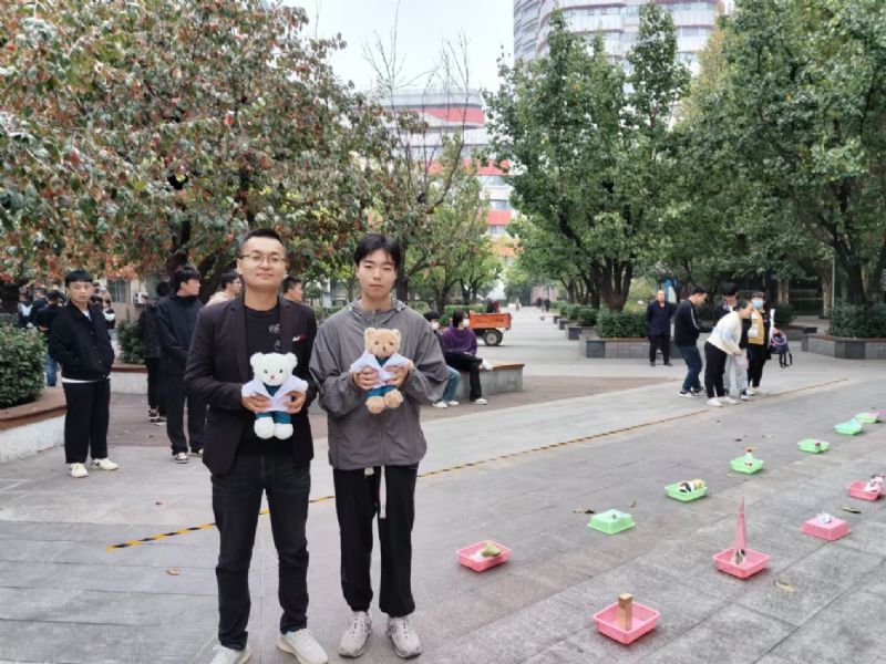 在趣味套圈活动中,场地中央摆满了丰富多样的奖品:毛绒布娃娃、护手霜、手提袋、钥匙扣、保温杯等一字排开,参与者们排起了长队,个个跃跃欲试,期待套中自己心仪的奖品。每一次成功投掷,都伴随着观众的掌声与祝贺,整个活动氛围欢快而温馨。趣味套圈不仅带给大家收获礼物的喜悦,更让同学们在轻松愉快的氛围中释放了学习与生活的压力。