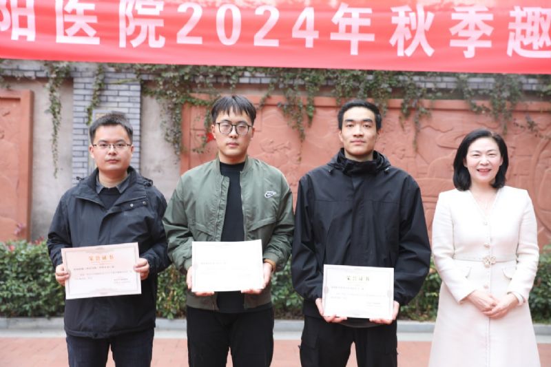 经过几轮激烈的力量比拼和角逐,咸阳职业技术学院实习队凭借强劲的体力与默契的配合勇夺拔河比赛一等奖,西安医学高等专科学院实习二队获得拔河比赛二等奖,住培医师(神经内科、外科专业)队获得拔河比赛三等奖。韩晓芳调研员为获奖队伍颁发了奖状,并向所有参赛选手表达了热烈的祝贺与鼓励。拔河比赛不仅让大家体验了团队协作的力量,更在赛场上展现了青春无畏、拼搏向上的精神风貌。