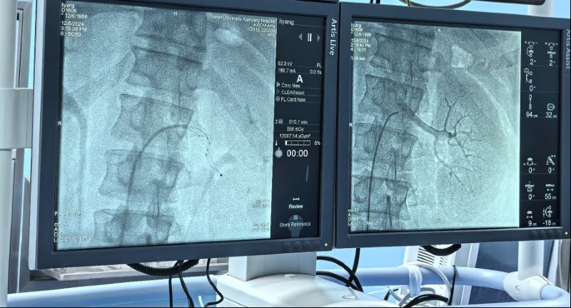 2024年12月6日,在心血管病院吴栋梁院长及刘雄涛副院长携领下,延安大学咸阳医院心血管介入团队顺利开展了全国首批、咸阳市首例“经皮肾动脉去神经射频消融术(RDN)”,实现了咸阳地区高血压诊治的里程碑式突破。
