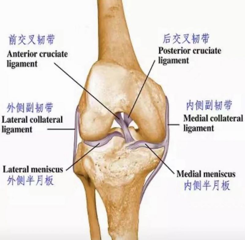 前交叉韧带在膝盖的内侧,连接了股骨与胫骨,起到稳定膝关节和控制关节活动的作用。与后交叉韧带呈现交叉状,因此也被称为前十字韧带。